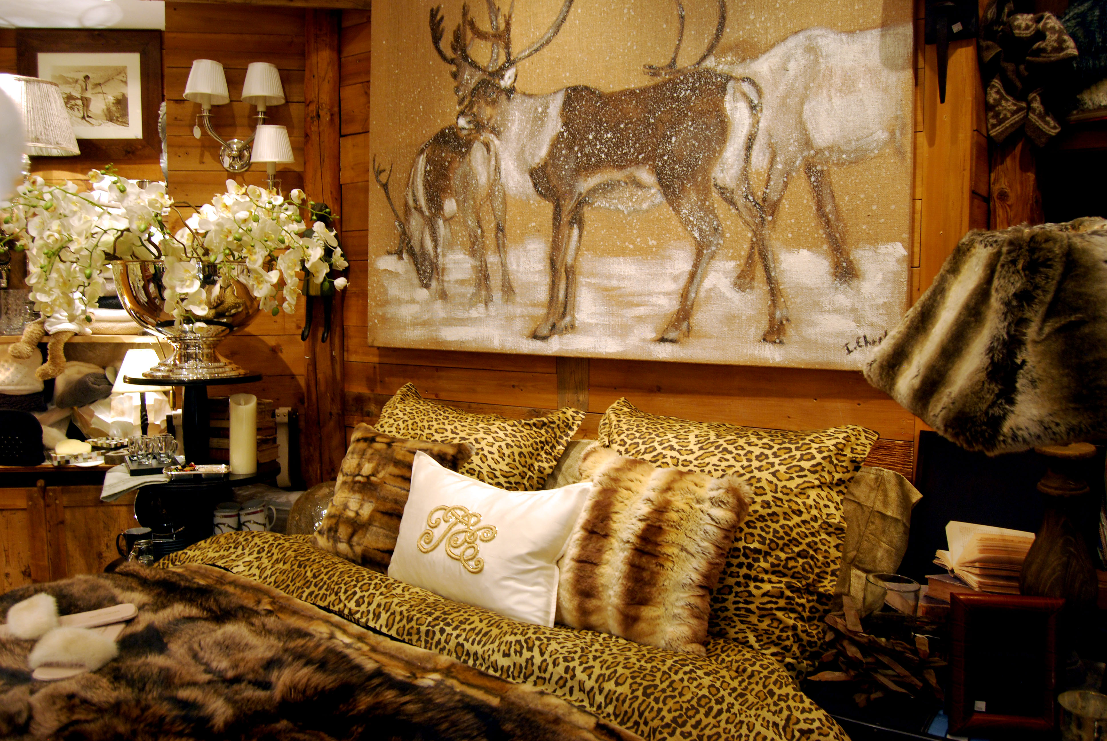 In the Espace Diamant gallery in Courchevel 1850, our shop welcomes you during winter and summer seasons and on appointment all year long. In a cosy chalet atmosphere, you will find the last trends of the traditional and contemporary mountain spirit. Furniture - Upholstery - Curtains - Lighting - Bedding - Covers - Tableware - Bathroom Products - Gifts - Jewelry - etc.